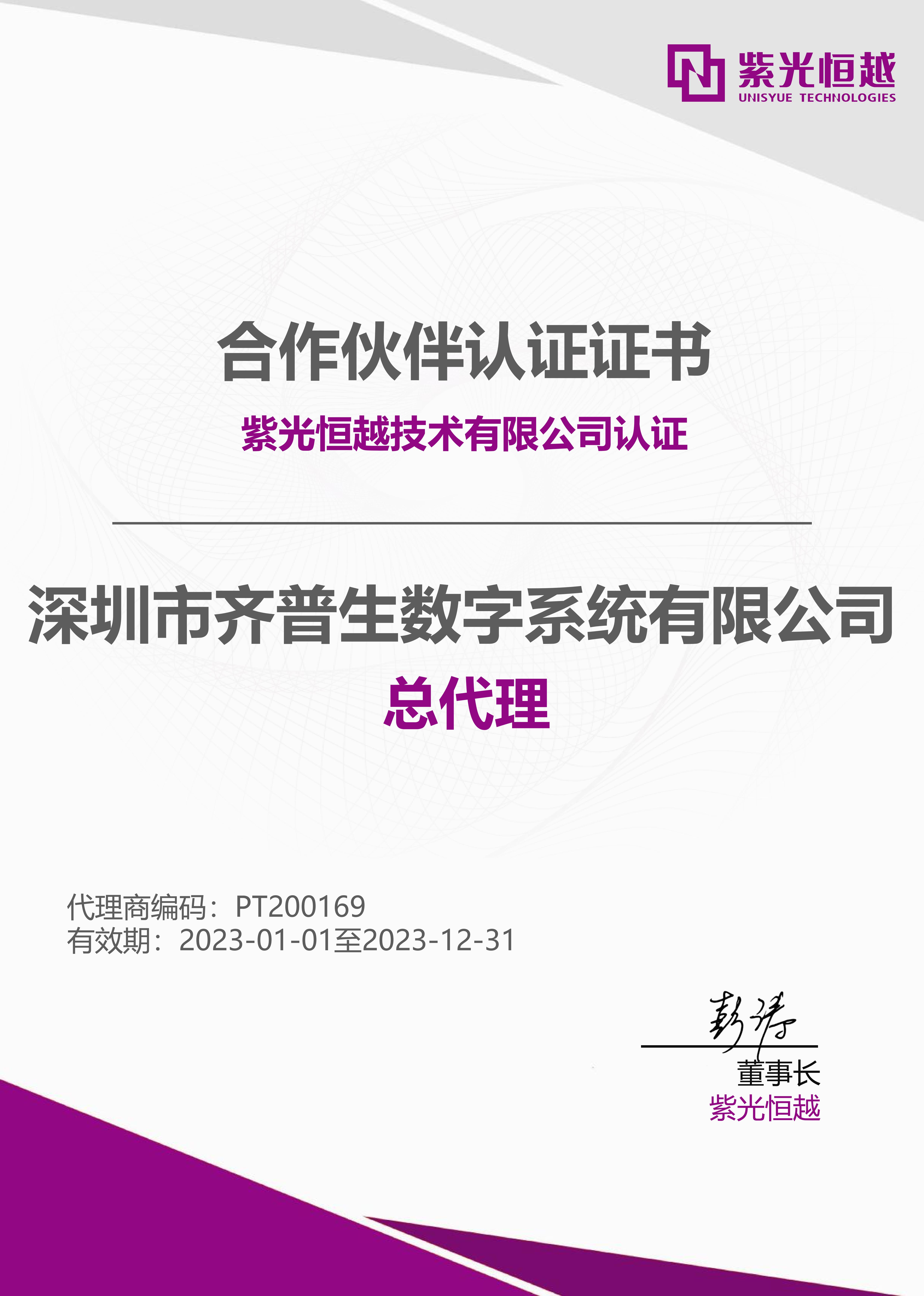 • 紫光云總代理證書