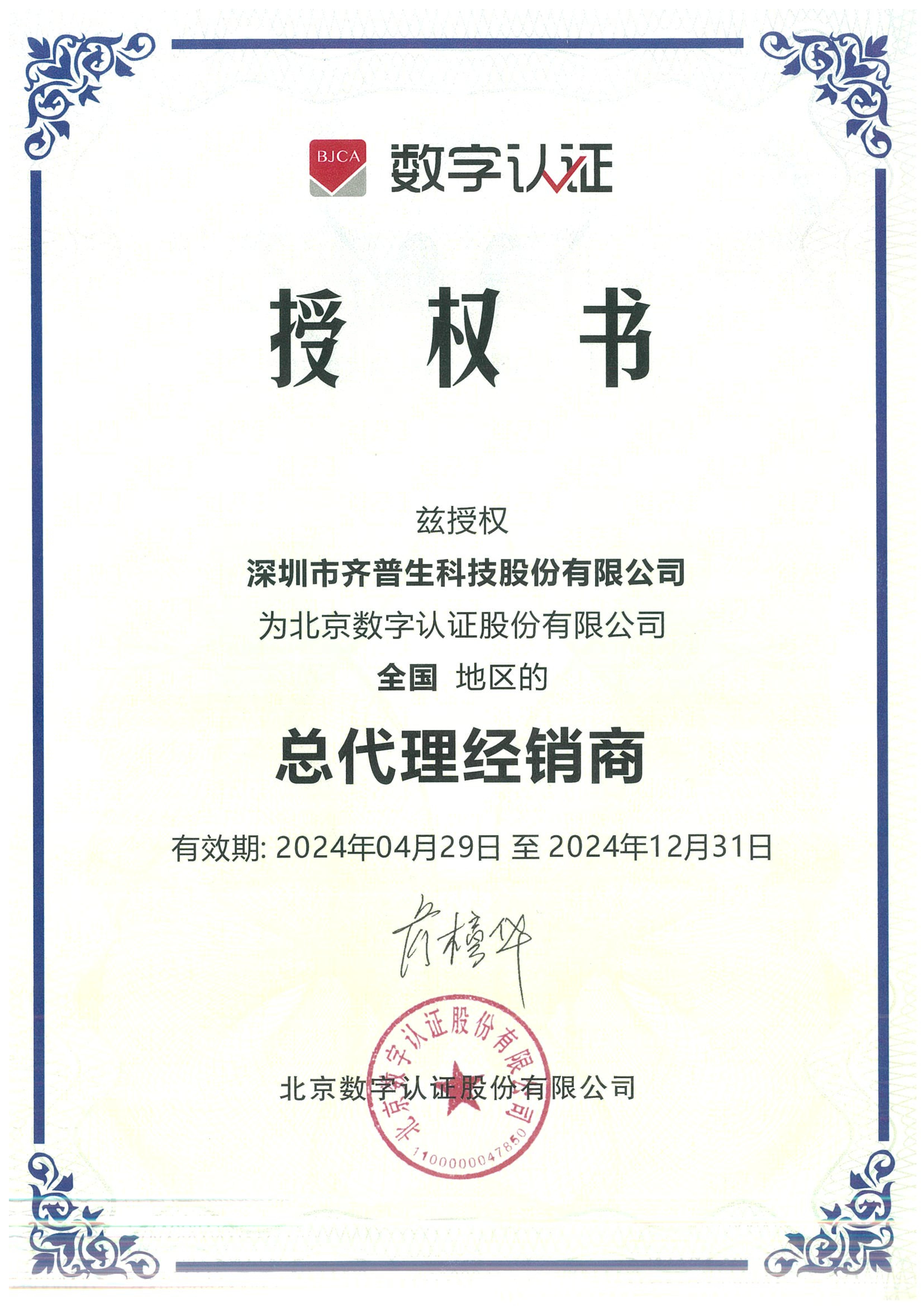 • 數(shù)字認證總代證書