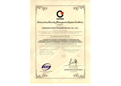 信息安全管理體系認證證書(正本)