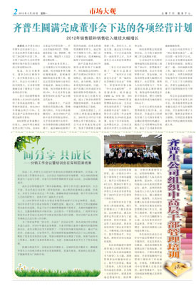 齊普生圓滿完成董事會下達的各項經營計劃